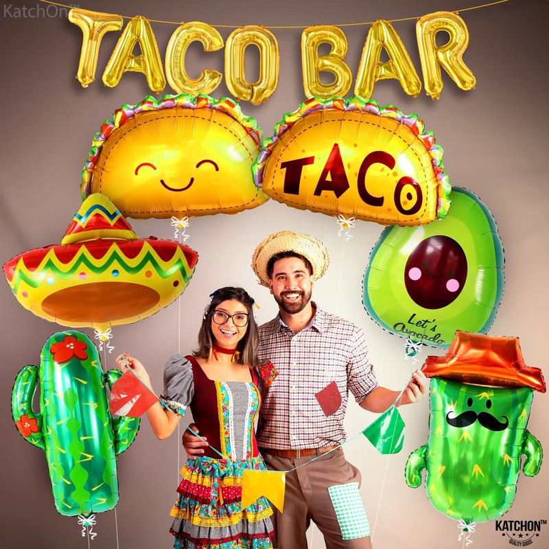 KatchOn, Huge 13 Pcs Taco Bar Decorations - Fiesta Party Decorations | Taco Balloons, Fiesta Balloons, Taco Party Decorations | Cactus Balloons, Cinco De Mayo Decorations | Mexican Party Decorations