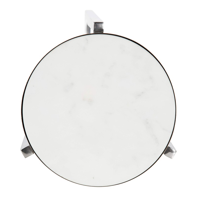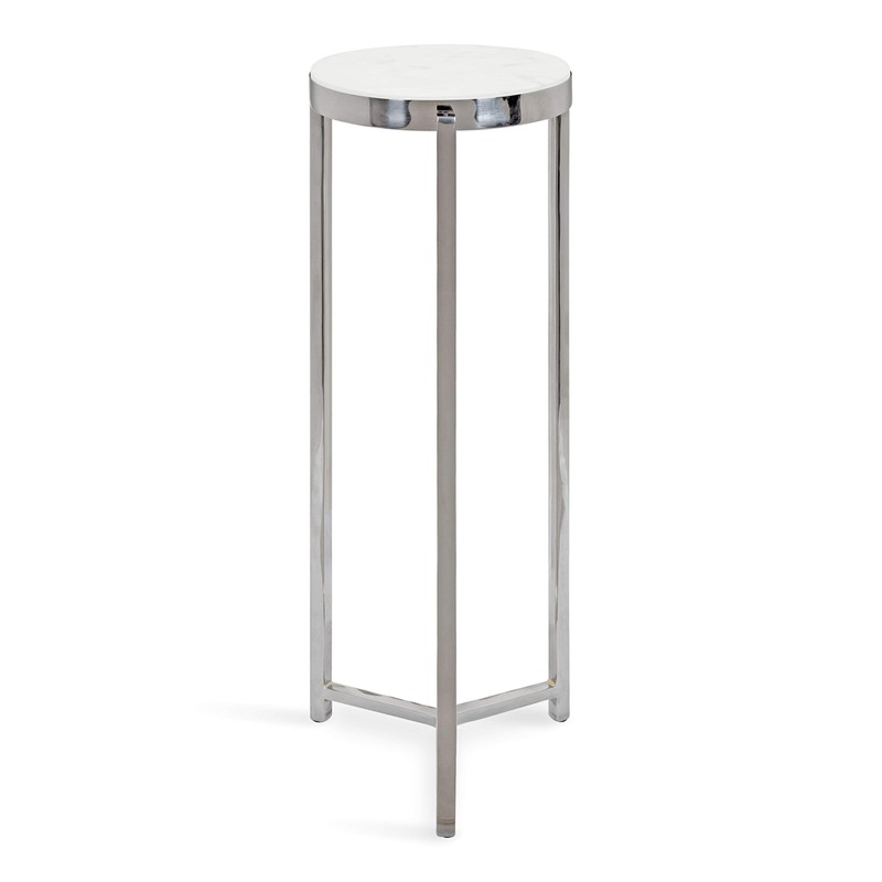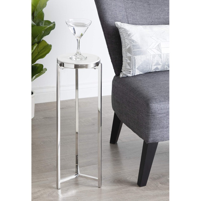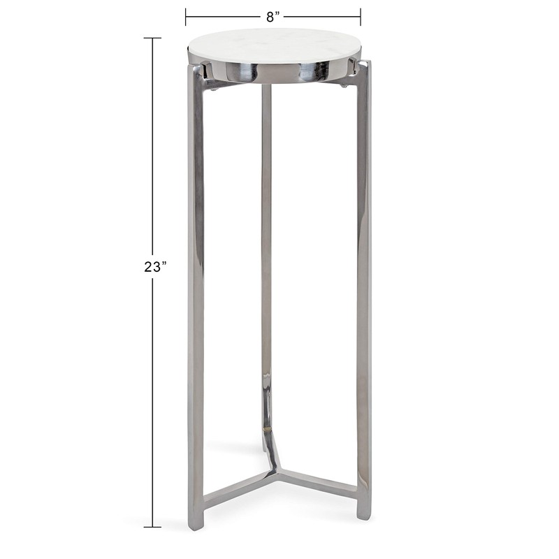 Kate and Laurel Aguilar Glam Drink Table, 8" x 8" x 23", Silver and White, Transitional Tea Table and Plant Stand with Marble Tabletop
