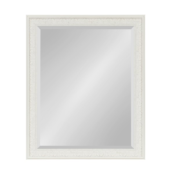 Using a mirror to dress up a part of your home is a simple choice with the Alysia rectangular wall mirror by Kate and Laurel. It is a beautiful addition to any wall and an essential element in your home decor. An easy way to revamp a space, the large 26.5 x 32.5-inch rectangle frame has the perfect dimensions to add a stylish statement to a hallway, bedroom or living room. You could even place two on adjacent walls for opening up space in any smaller room. The substantial size makes it a natural selection for your bathroom either as a tasteful piece of wall art or a practical vanity mirror. The traditional, ornately decorative frame creates a romantic look in a classic design and blends with other styles well, so it is sure to fit perfectly in a kitchen, hallway or dining room too. The frame is made of a sturdy polystyrene material and has a 2.5-inch wide profile with a lovely white-wash foil finish with a beautiful embossed pattern. The beveled mirror surface is a generous 21.5 x 27.5 inches, reflecting lots of light and brightening up any space.