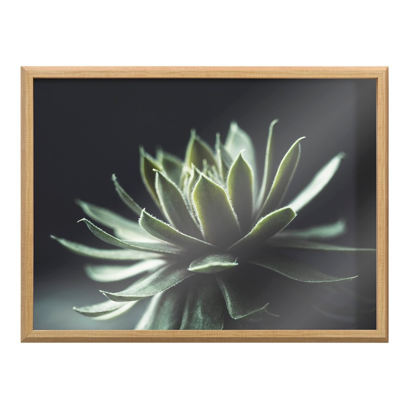 Kate and Laurel Blake Warrior Succulent Framed Printed Glass Natural Plant Wall Art by Emiko and Mark Franzen of F2Images, 18x24 Natural, Moody Botanical Glass Art