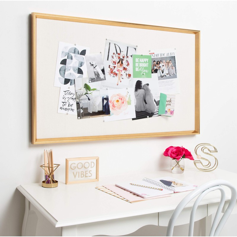 Kate and Laurel Calter Framed Linen Fabric Pinboard, 25.5 x 41.5, Gold