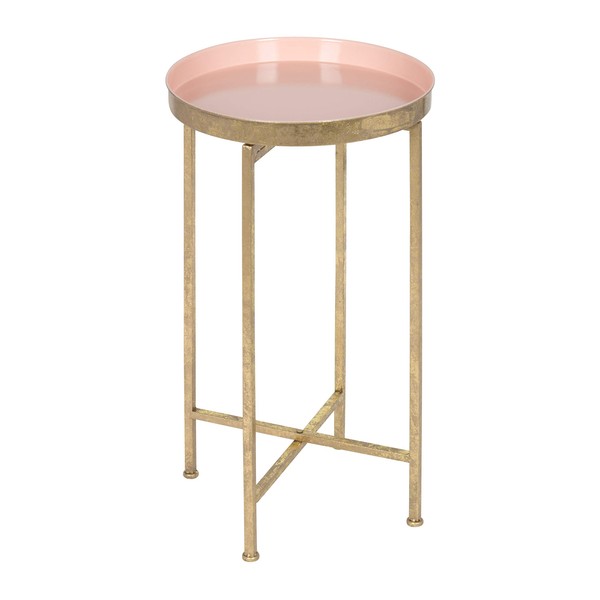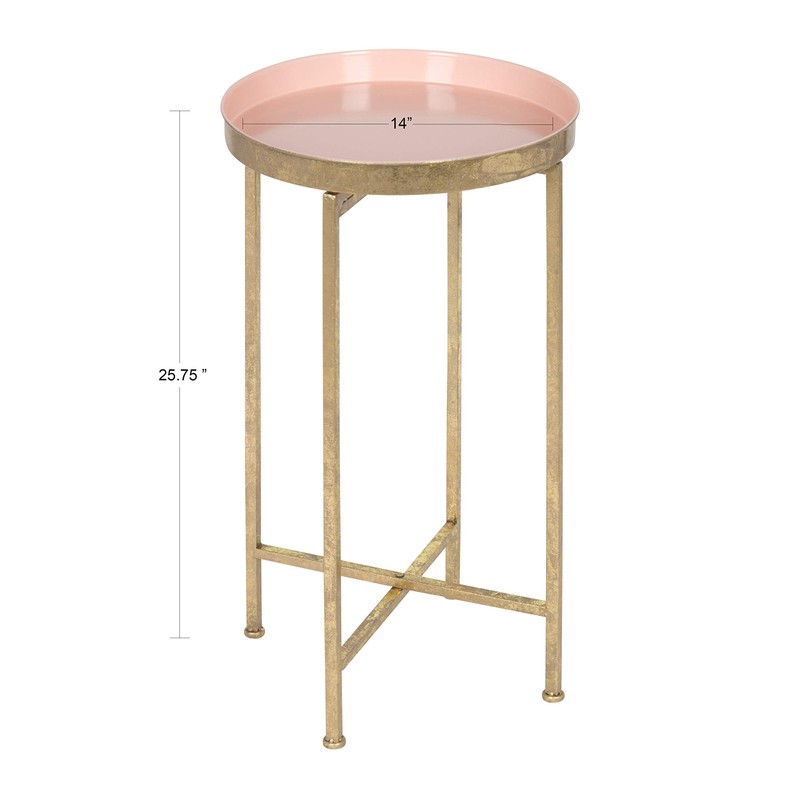 Kate and Laurel Celia Round Metal Foldable Tray Accent Table, Pink with Gold Base