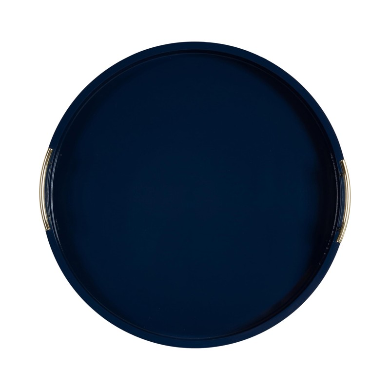 Kate and Laurel Lipton Circle Coffee Table Living Room Decor or Large Serving Tray, 22" Diameter, Navy Blue/Gold