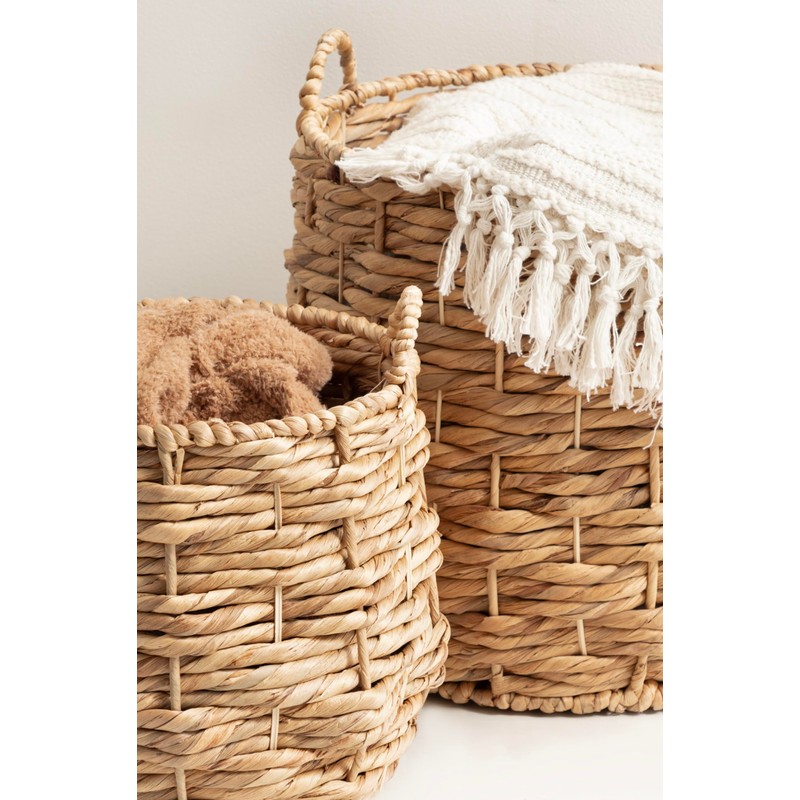 - Hand-Woven Water Hyacinth Material: These baskets and their handles are hand-crafted from water hyacinth for a natural look that doesn't skimp when it comes to design