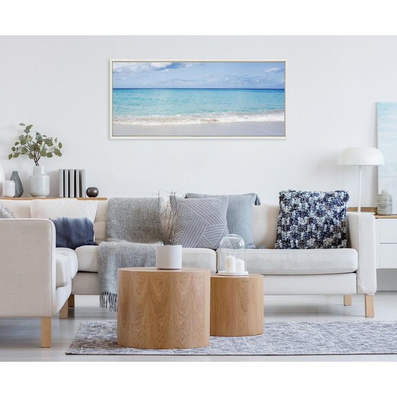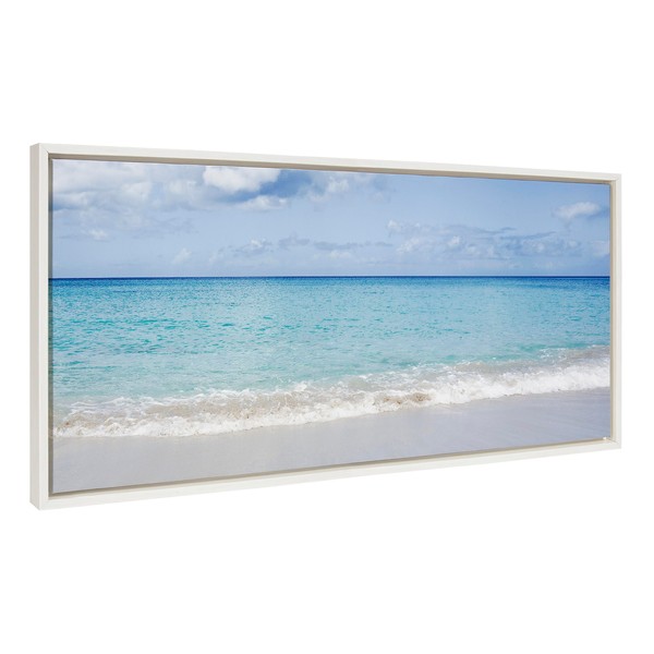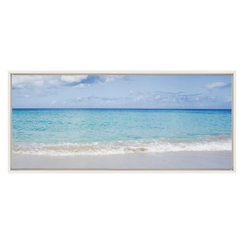 Kate and Laurel Sylvie I Want to go Back Framed Canvas Wall Art by Vidal Hernandez, 18x40 White, Wide Ocean Beach Landscape Art for Wall