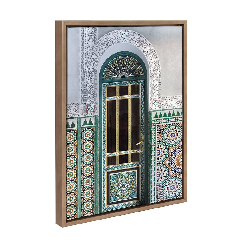 Kate and Laurel Sylvie Morocco Essaouira Door Framed Canvas Wall Art by Golie, 18x24 Gold, Beautiful Modern Art for Wall