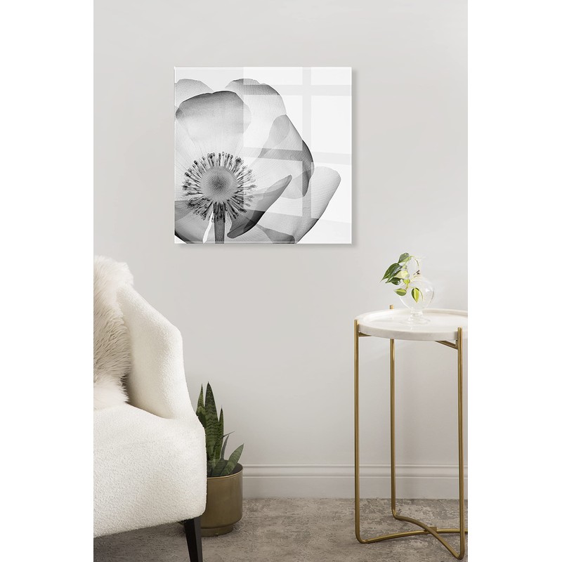 Kate and Laurel x The Creative Bunch Studio Collaboration Poppy X-Ray Floral Modern Acrylic Art, 23x23, Black and White Minimal Flower Art for Wall