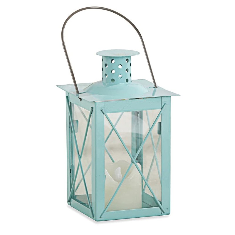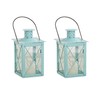 Kate Aspen Medium Decorative Lanterns - Set of 2 - Luminous Blue Metal Lantern Tealight Candle Holders Centerpieces for Wedding, Home Decor and Party - 6.3" H (8.9" H with Handle)