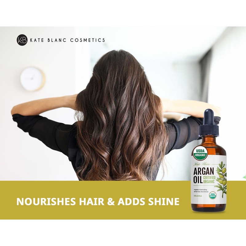 Kate Blanc Cosmetics Argan Oil for Hair, Face & Skin from Morocco (4oz, USDA Certified Organic, Cold Pressed & 100% Pure, Light)