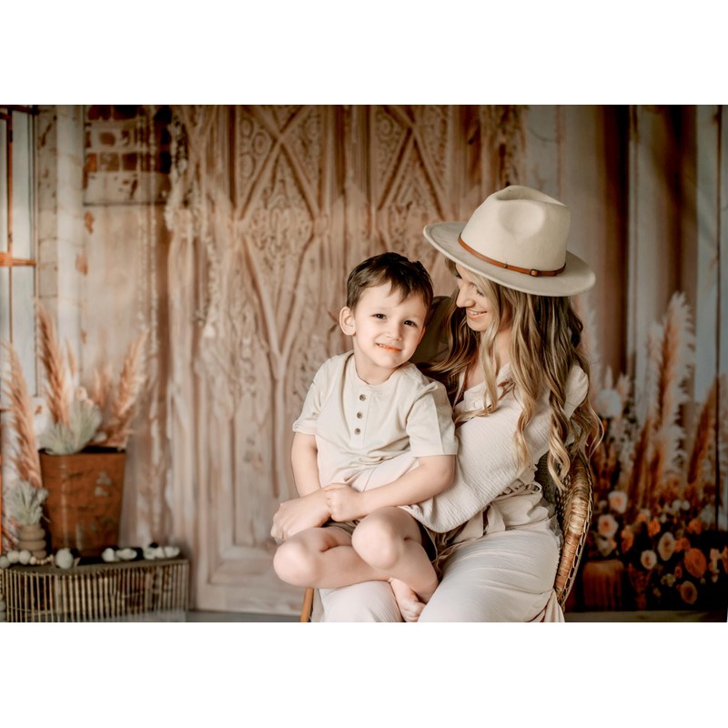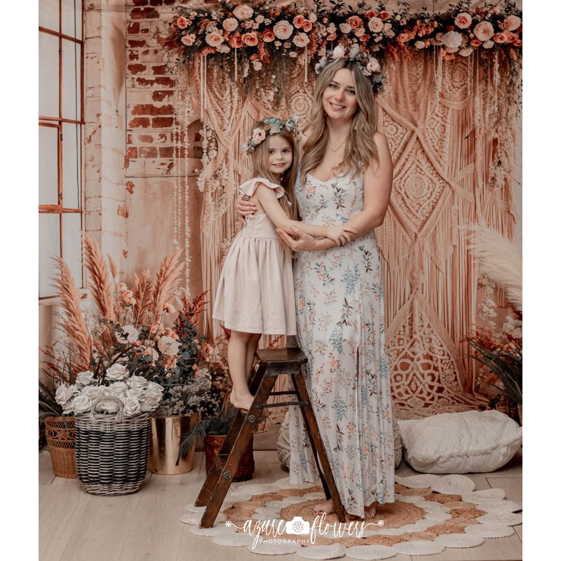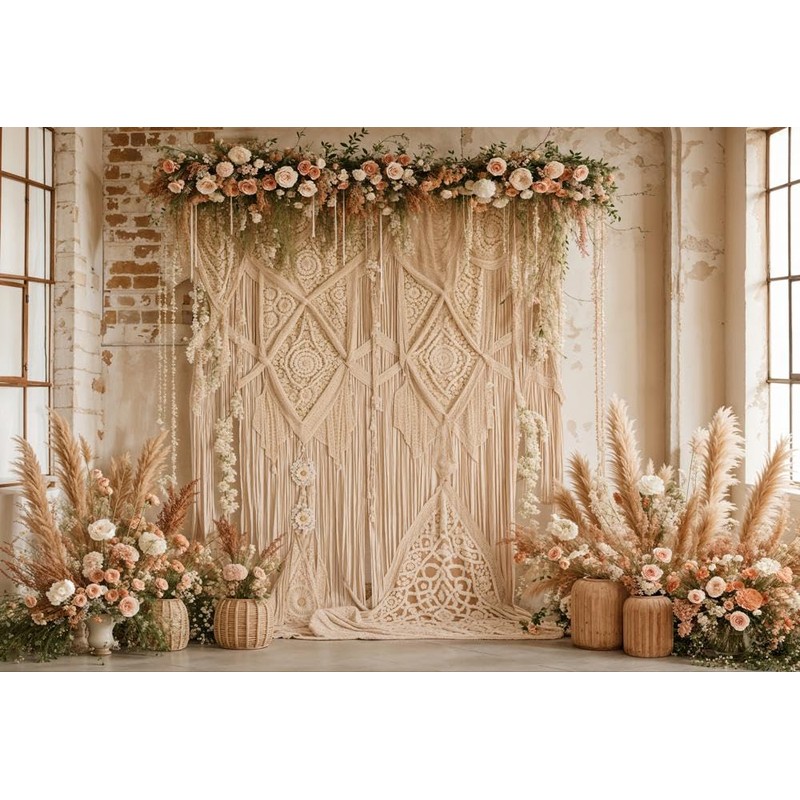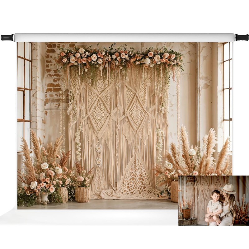 Kate Boho Backdrop Bohemia Backdrop with Floral Boho Floral Photo Background Ceremony Party Background for Photography Studio Props, 7x5ft