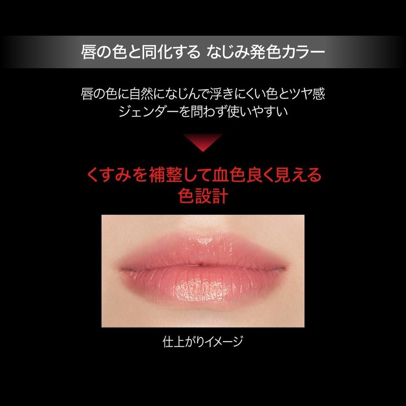 Lip Monster Clear Tone, a lip color that blends naturally with your lips' color, featuring a familiar, vivid hue. It offers long-lasting wear and is resistant to fading. Using a unique technology that utilizes the moisture evaporating from your lips, it transforms into a gel-like film that adheres closely, ensuring the color stays for an extended period. It provides natural, well-blended color and hydration.