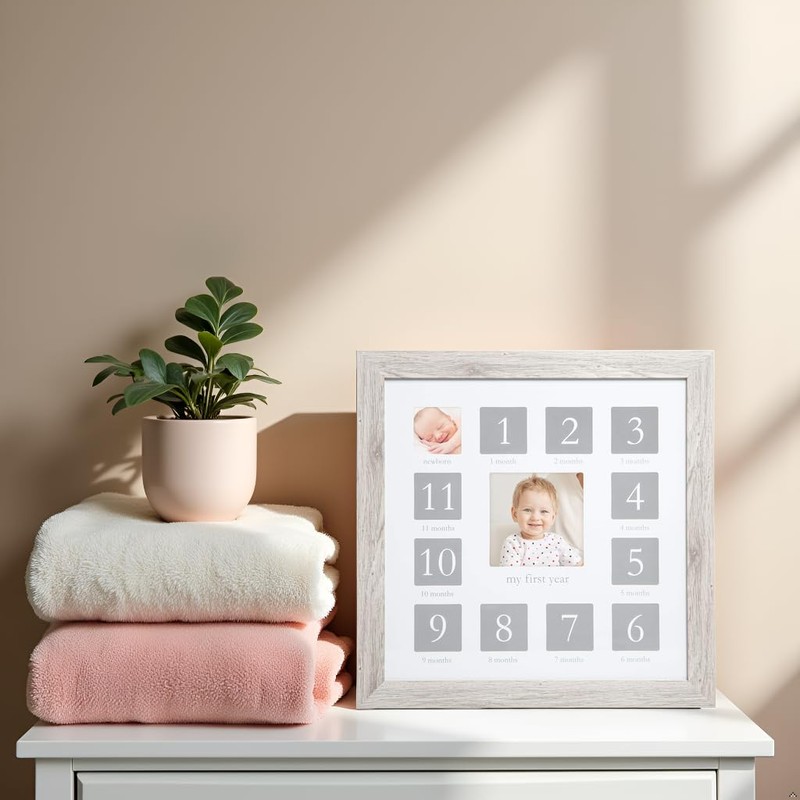 - Help new parents capture each and every first year baby milestone with this beautiful monthly baby photo frame
