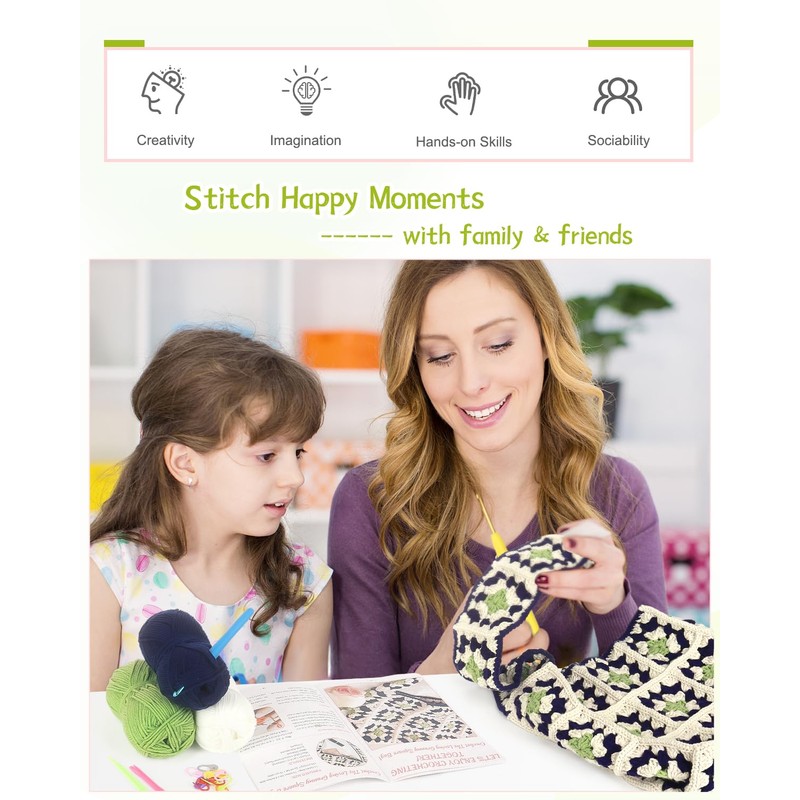 - Crochet set for beginners: The beginner crochet kit contains everything you need to make a bag of granny squares, even for beginners or adults who are just starting to learn the craft of crochet, with easy to follow illustrated instructions to crochet. Enjoy your crochet journey without having to buy additional knitting accessories.