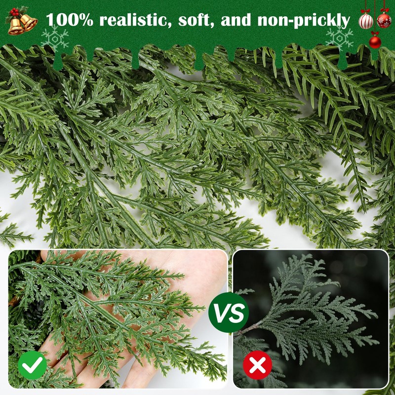 - Realistic Christmas Garlands: Made with premium materials, our garland mix 2 kinds of stems and features realistic soft textures and vibrant green hues for a natural holiday look