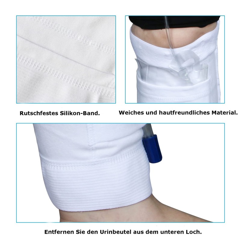 - Ein großer Helfer für Urin-Inkontinenz-Patienten, kann unsichtbar unter der Hose platziert werden, hält den Schlauch und Beutel versteckt, bewahrt die Würde der katheterisierten Bewohner.