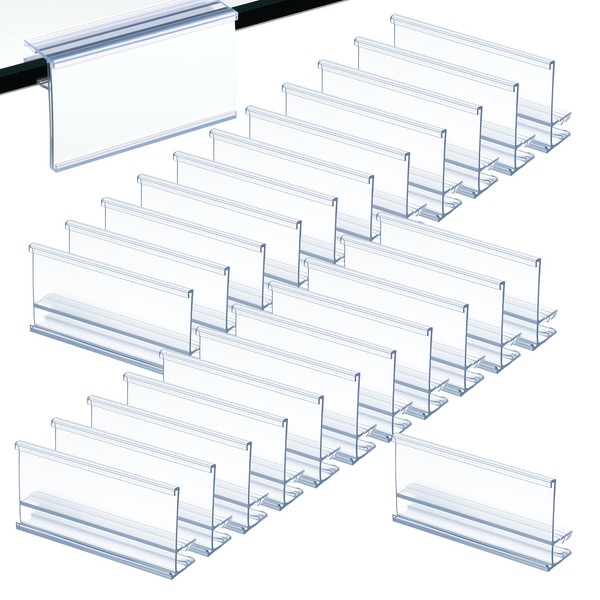 Kathfly 50 Pcs 2.5 l x 1.25 H Plastic Label Holder Clear Reusable Plastic Shelf Label Holder Grips on Glass from 3/16 to 1/4 Thick for Pantry Retail Merchandise Shopping Mall Store Supermarket
