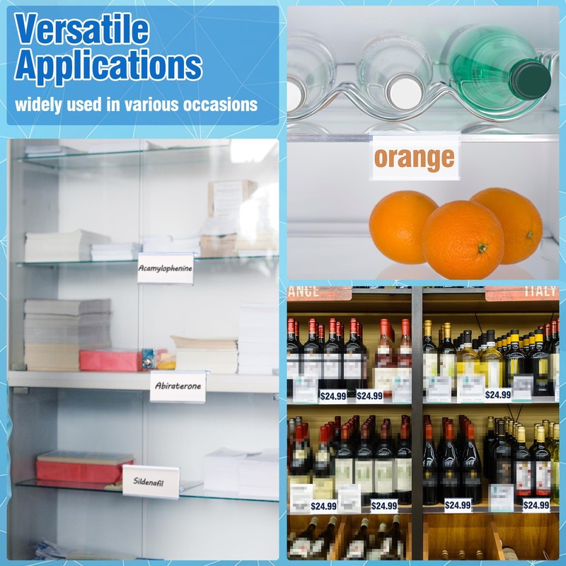 • Package Include: with a package of 50, these clear shelf label holders cater to a variety of scenarios; From retail settings to personal libraries, they offer flexibility and convenience, adapting easily to glass shelf label holders for diverse uses