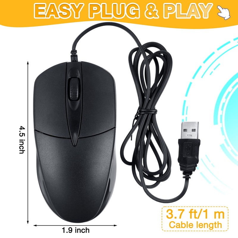 - Basic Buttons: this wired computer mouse is a good partner in workspace; Unlike other mice that load of unnecessary buttons, this mouse is built with a simple left click, right click and scroll wheel layout that is easy to use