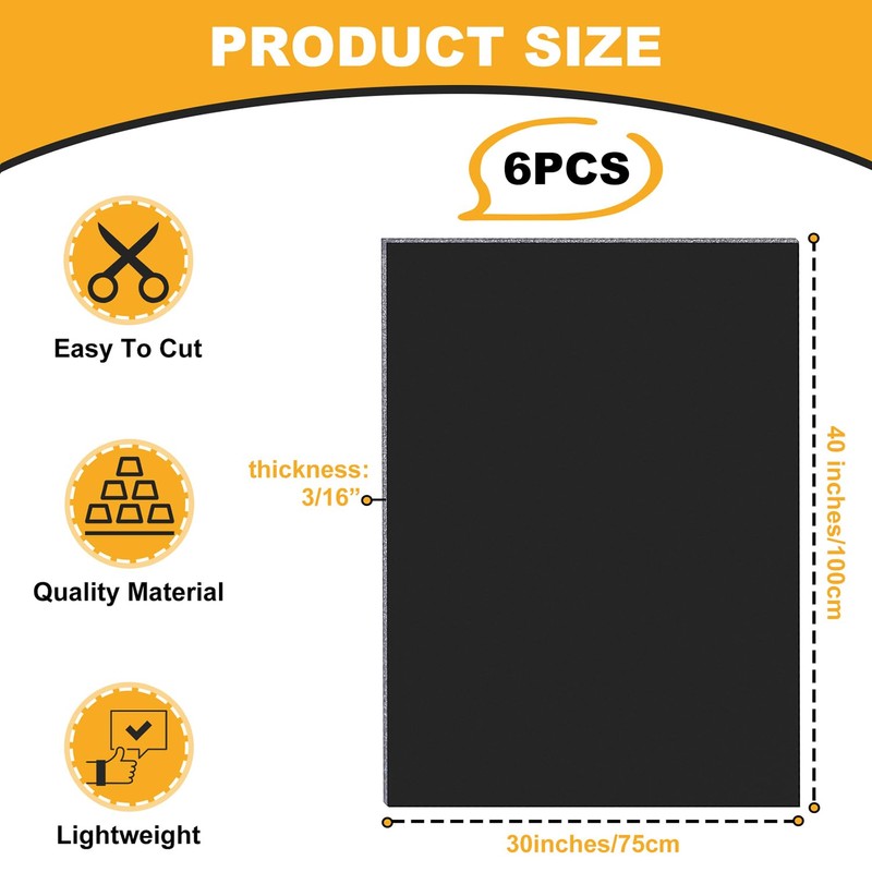 Kathfly 6 Pack Large Foam Boards Bulk 3/16 inch Thickness Giant Foam Core Board Presentation Board Multipurpose Blank Board for Presentation Project Crafts Mounting School Display(30 x 40 Inch,Black)