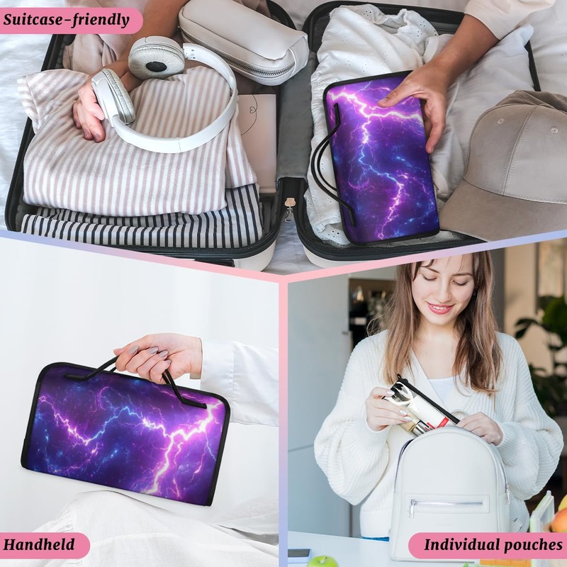 KATHRYNAYA 4 In 1 Hanging Toiletry Bag Roll-Up Makeup Bag with 4 Detachable Removable Zipper Clear PVC Pouch, Folding Waterproof Cosmetic Organizer Bag For Travel Gym Camping Grooming Dai(Lightning)