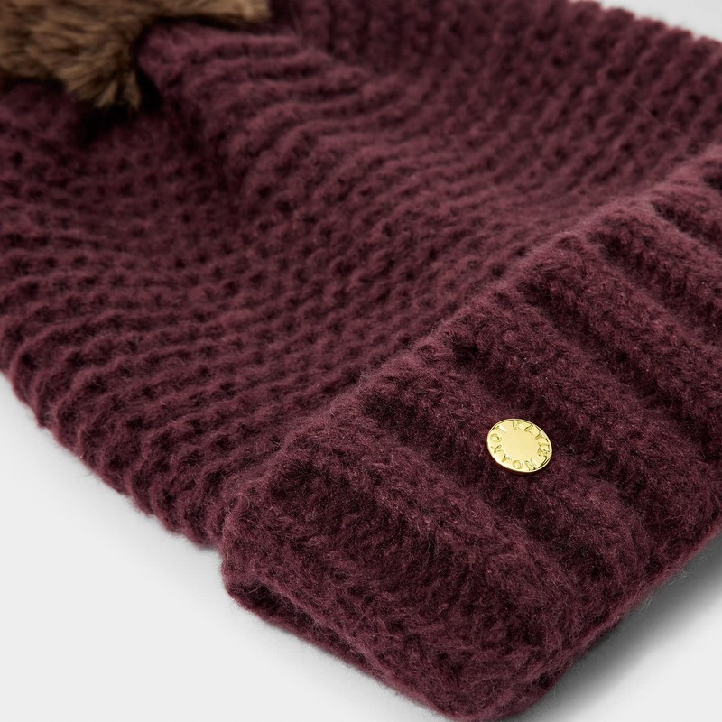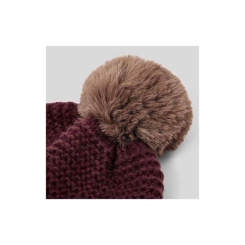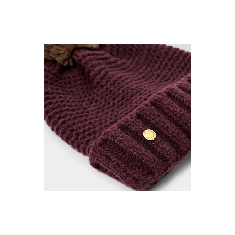 KATIE LOXTON Womens One Size Fits Most Chunky Knit Faux Fur Pom Hat in Plum