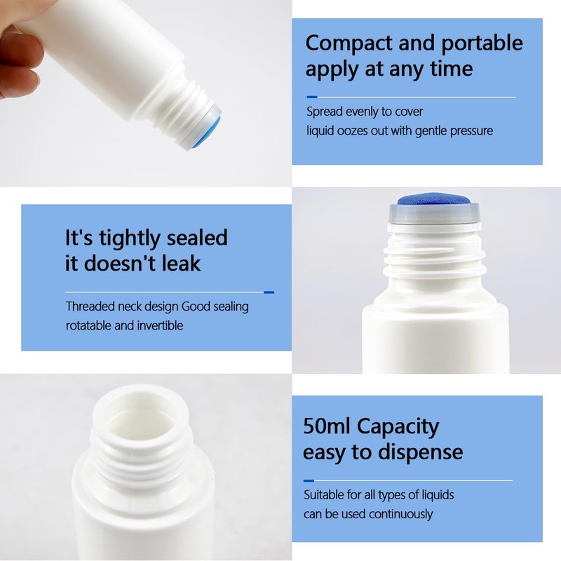 10pcs Empty 50ml Bottle Liquid Liniment Sponge Head Applicator Dispenser Refillable Skin Care Cosmetic Travel Lotion Storage Container Applicator Bottle