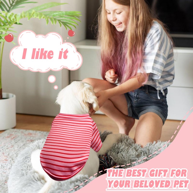 - đ¶ăEasy to wearăStretchable materials make these shirts easy to put on and take off. Dog striped T-shirt has strong elasticity and good stitching, suitable for small and medium-sized pets. Pets can also move freely and easily defecate without taking them off