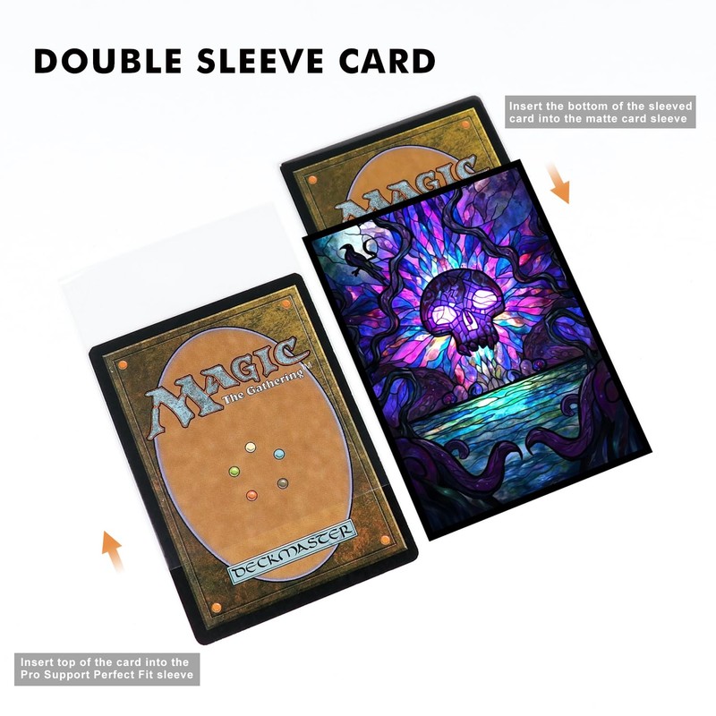 - 100 pcs art card sleeves with 100 pcs perfect fit sleeves, ultra clear, back matte texetured, smooth suffling, double sleeve for better card protection.