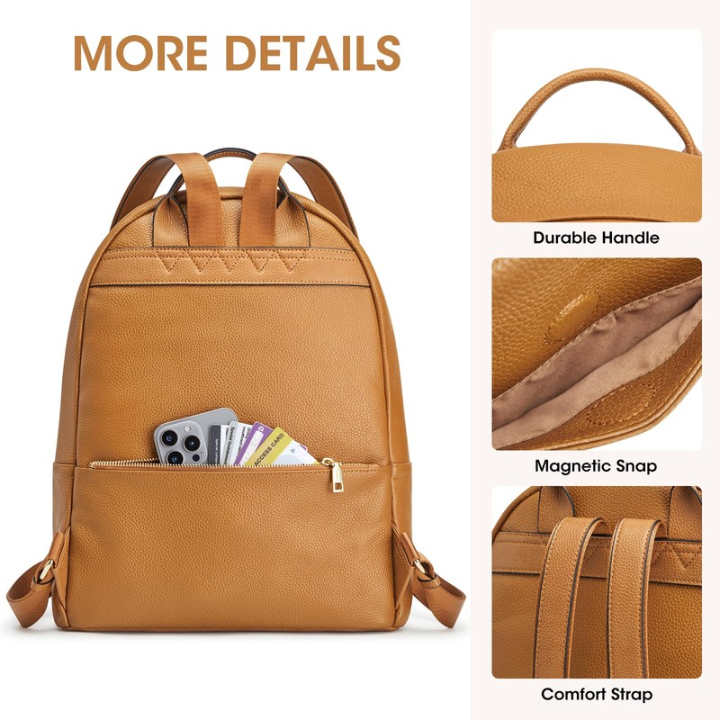 - Back Zipper Pocket: This genuine leather backpack has a zippered back pocket to keep your belongings safe