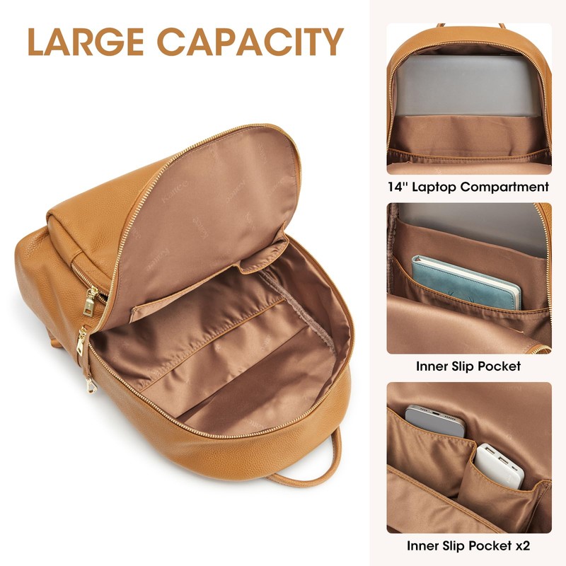 Kattee Leather Backpacks for Women,Fashion Multi-fuction Bag with Card Zipper Bag Attached at the Back for Travel Work Shopping and School, Brown