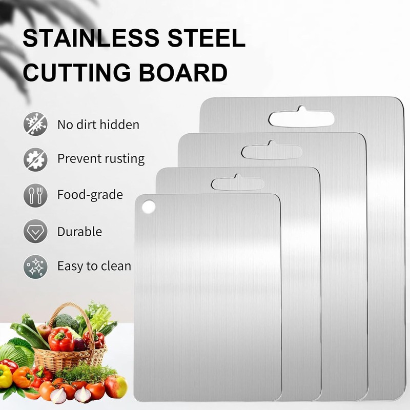 - 【Healthier and Safer】Our cutting boards are made of 100% pure titanium, which is a trusted material for surgical implants.Unlike wooden and plastic cutting boards, pure titanium cutting board do not absorb liquids, and are easy to clean,do not leave any odors or subtle food residues, making them a healthy choice for your kitchen