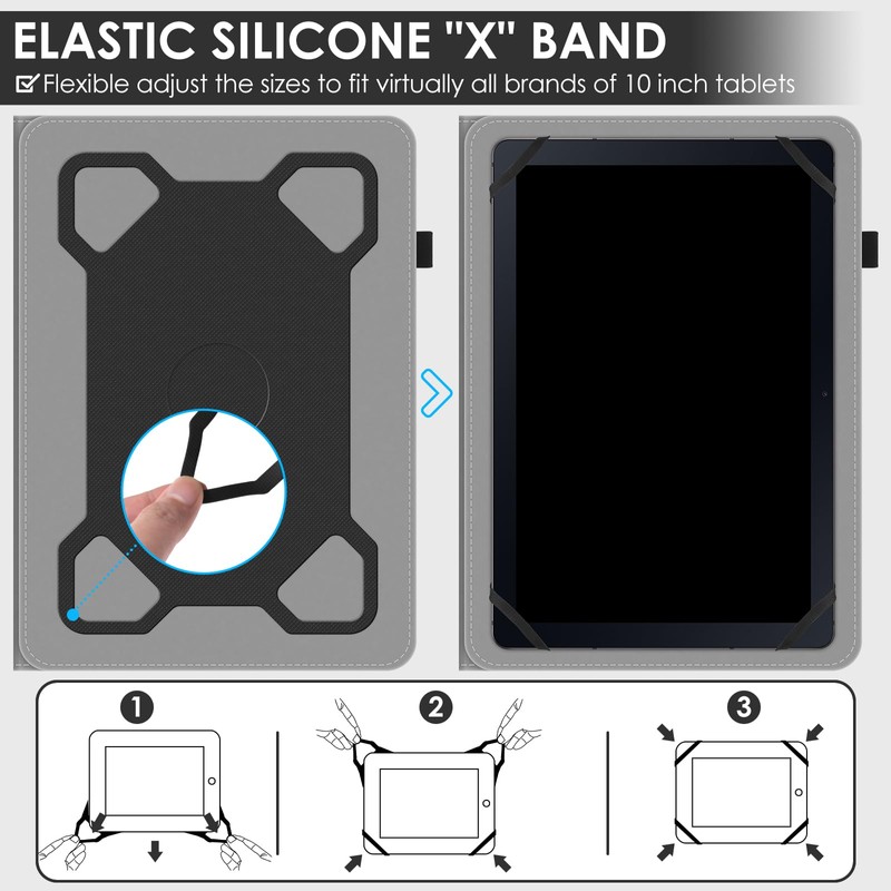 • High Applicability: 10 inch tablet case universal with adjustable fixing silicon band and hand strap, elastic silicon band is flexible enough to fit virtually all brands of 10 inch tablets.The Strong rubber band holds your tablet firmly, keeping your tablet in place safely and securely;