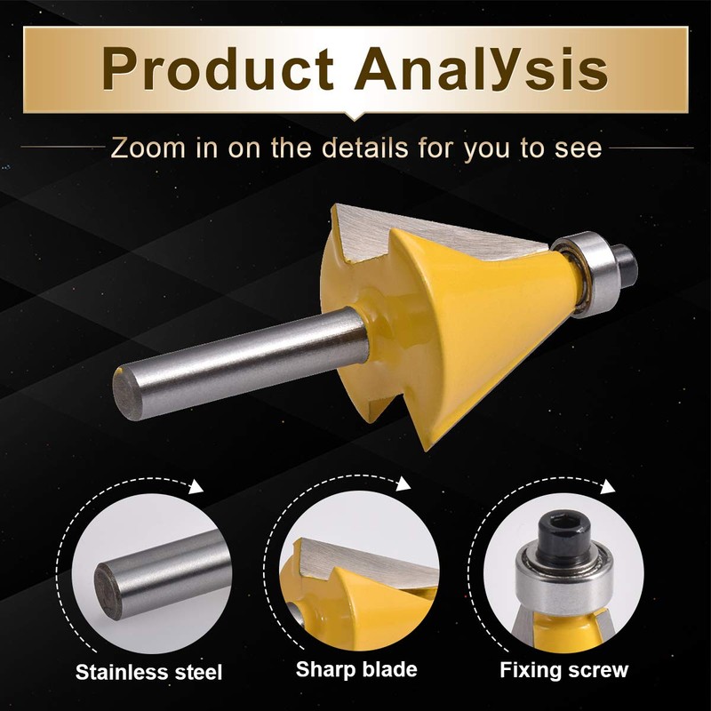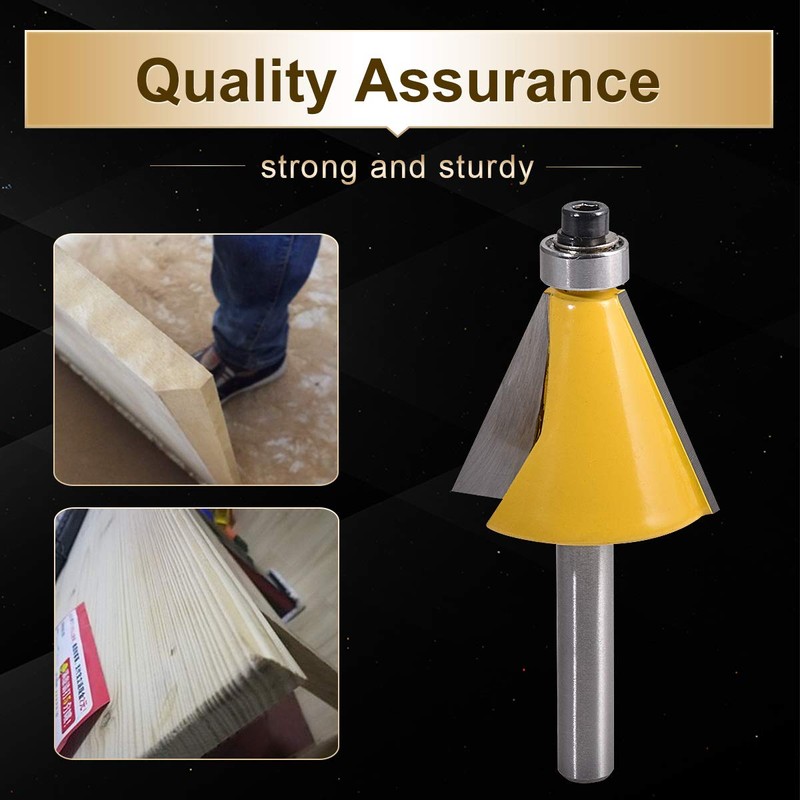 - ★【Chamfer and edge cutter】1/4 inch shank; 1.24 inch width; 1.0 inch depth; 22.5 degrees.