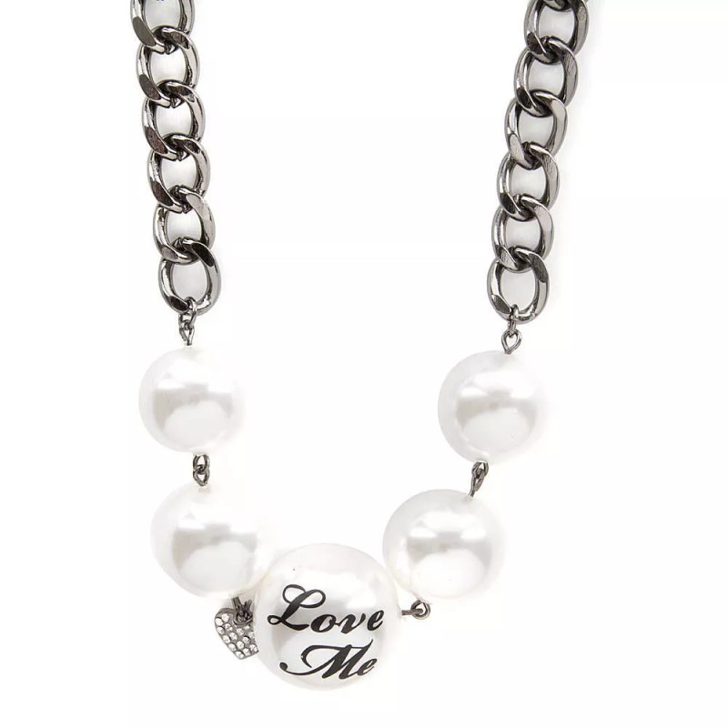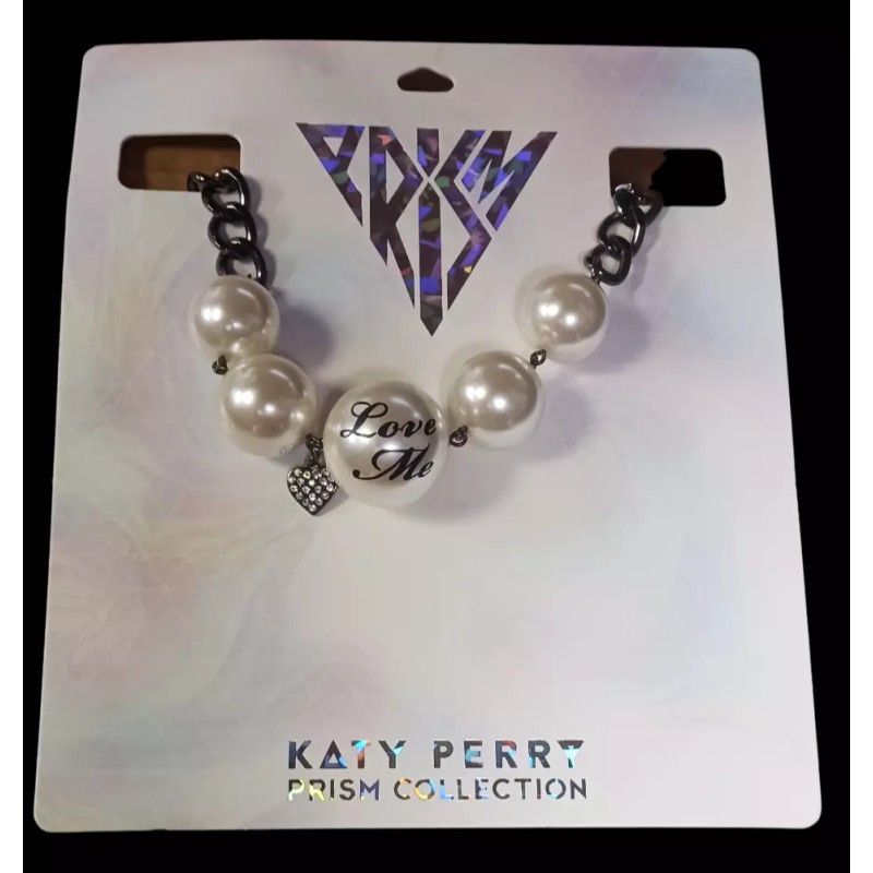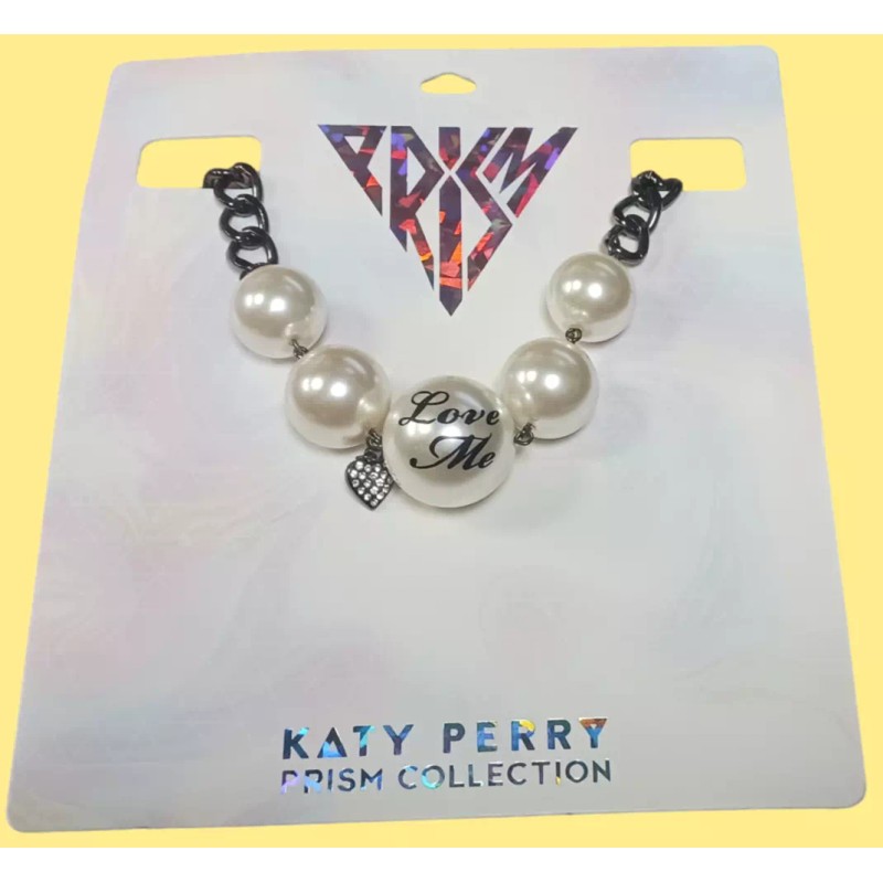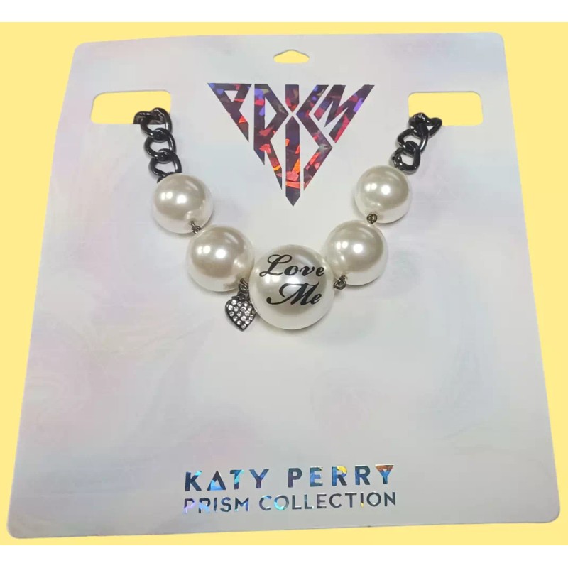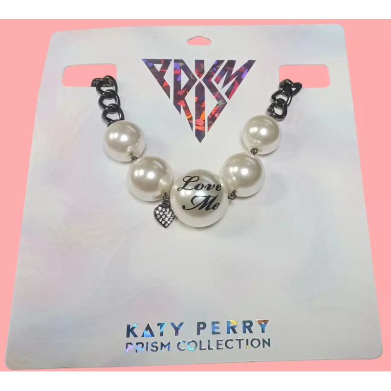 Katy Perry's song "Love Me" from her album PRISM is about loving yourself before you can love someone else. Inspired by the song, this necklace features a hematite chain link that holds 5 oversized pearls, with "Love Me" written on the center one. A small crystal studded heart charms dangles between two of the pearls. Part of the PRISM collection.