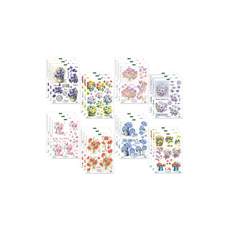 Katy Sue 'Pretty Flowers' 3D Die-Cut Decoupage (Pack of 24) for Card Making & Crafts - Featuring Sweet Peas, Corn Poppies, Hydrangeas, Pansies & More.
