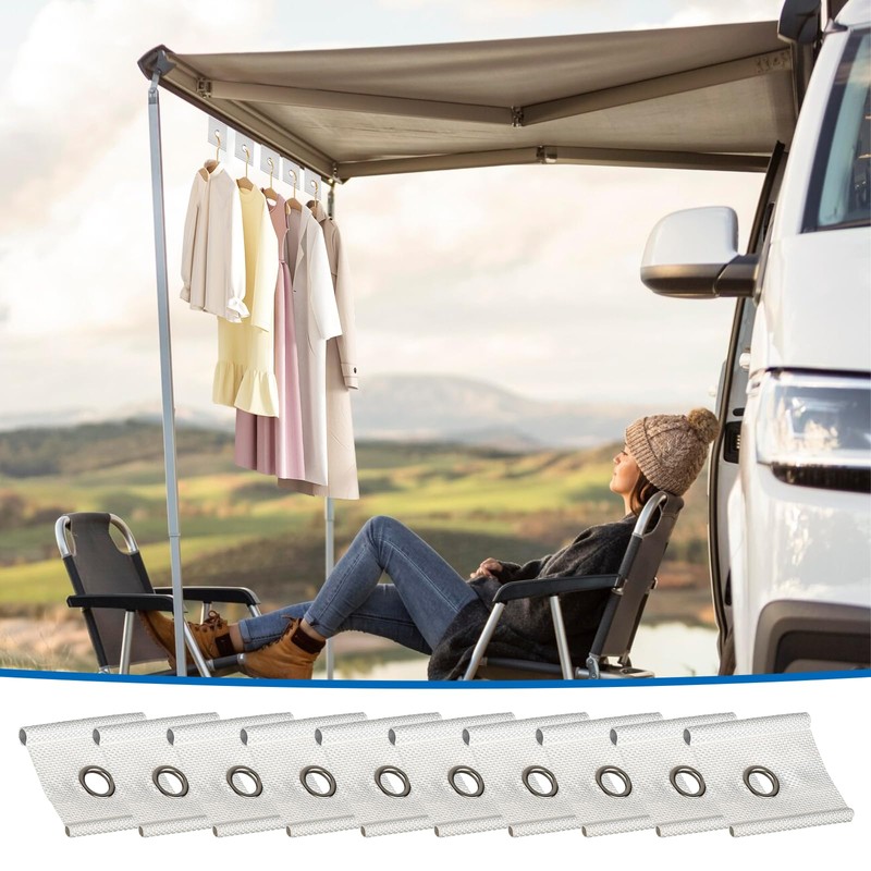 - STRONG & TEAR RESISTANT Our piping eyelet is made of durable double layer woven material, making it extremely durable and tear-resistant. Thanks to the metal holes and piping eyelets, it can be easily attached to a piping rail to hang various accessories for your RV camping. This ensures stability and practicality.