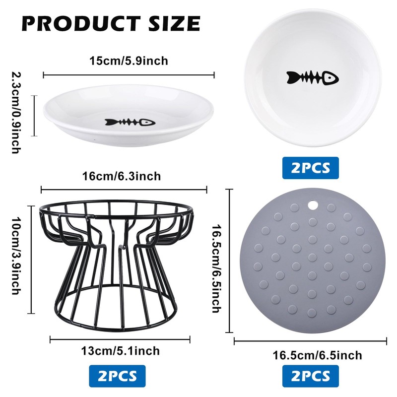 - Abmessungen: Die Maße des Metallhalters betragen 16 × 10 cm, die Keramik-Katzennapf 15 × 2,6 cm, und die Silikonmatte hat einen Durchmesser von 16,5 cm. Der große Öffnung des Katzennäpfe Erhöht erleichtert das Fressen auch für Katzen mit breitem Gesicht, besonders für langhaarige Katzen mit vielen Schnurrhaaren