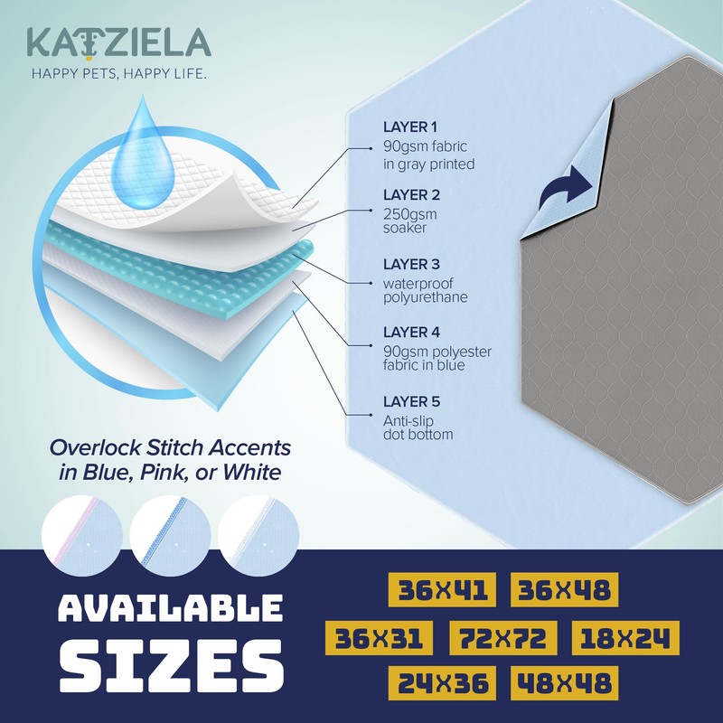 - ALL-DAY WETNESS PROTECTION - Keep your surfaces dry and your pet comfortable with Katziela reusable pet pads. Washable and designed to provide hours of waterproof wetness protection, these washable pee pads are perfect for young puppies, aging dogs, or pets with incontinence.