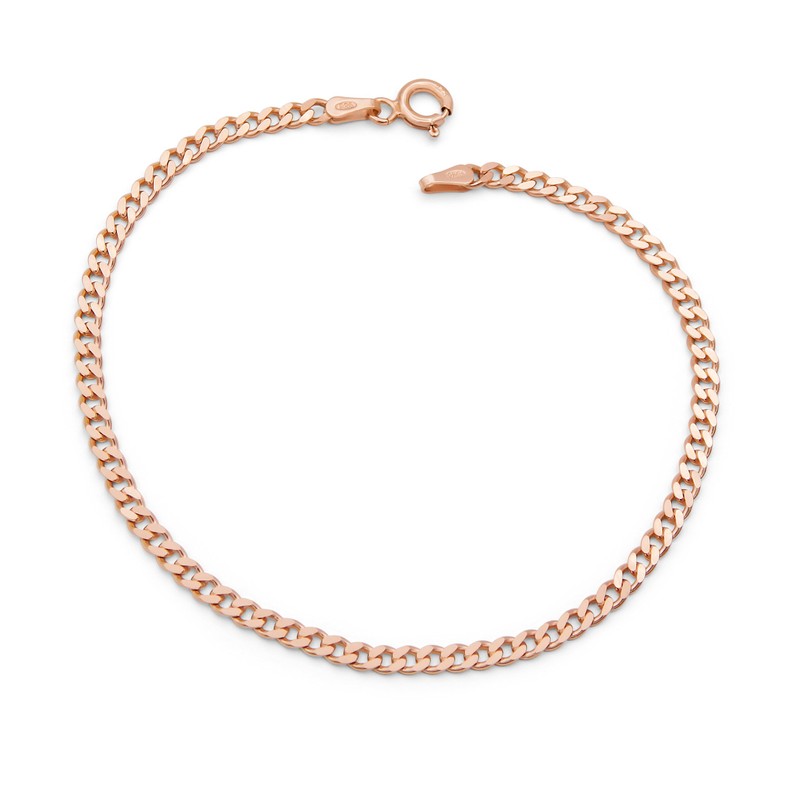 - High-quality curb chain bracelet made of genuine 925 sterling silver, rose gold-plated
