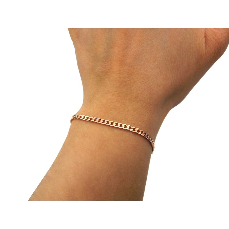 Kauf-mich-weg Women's Curb Bracelet 925 Sterling Silver Rose Gold-Plated 3 mm Wide Choice of Length 17 18 18.5 19.5 19.5 20 21 cm Curb Chain Rose Bracelet, Silver