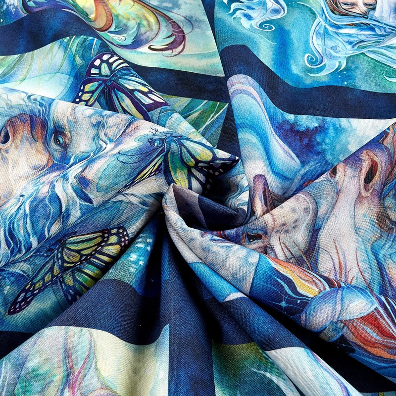 - Designed by Jody Bergsma for Robert Kaufman this cotton print fabric features a fairy and unicorn theme and is perfect for quilting apparel and home décor accents. Colors include shades of blue yellow ivory purple pink and orange. This panel measures approximately 24'' X 36".