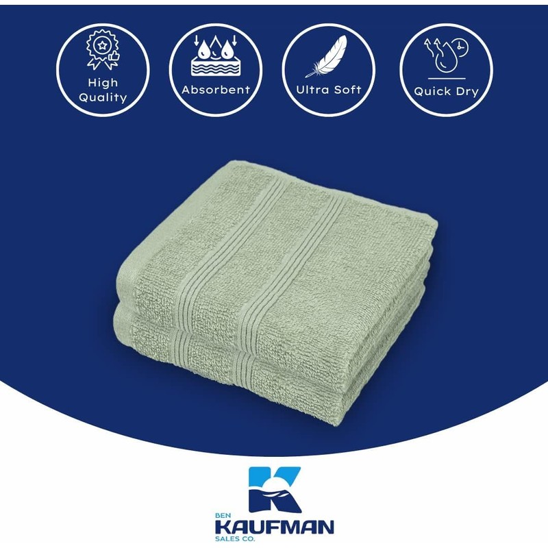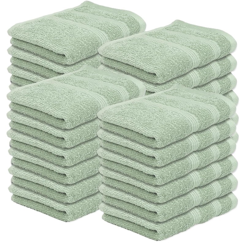 Kaufman - Washcloths for Bathroom, Spa, Gym, and Face Towel 100% Cotton Ring Spun, Ultra Soft Feel and Highly Absorbent Fingertip Towels (24, SAGE Green)