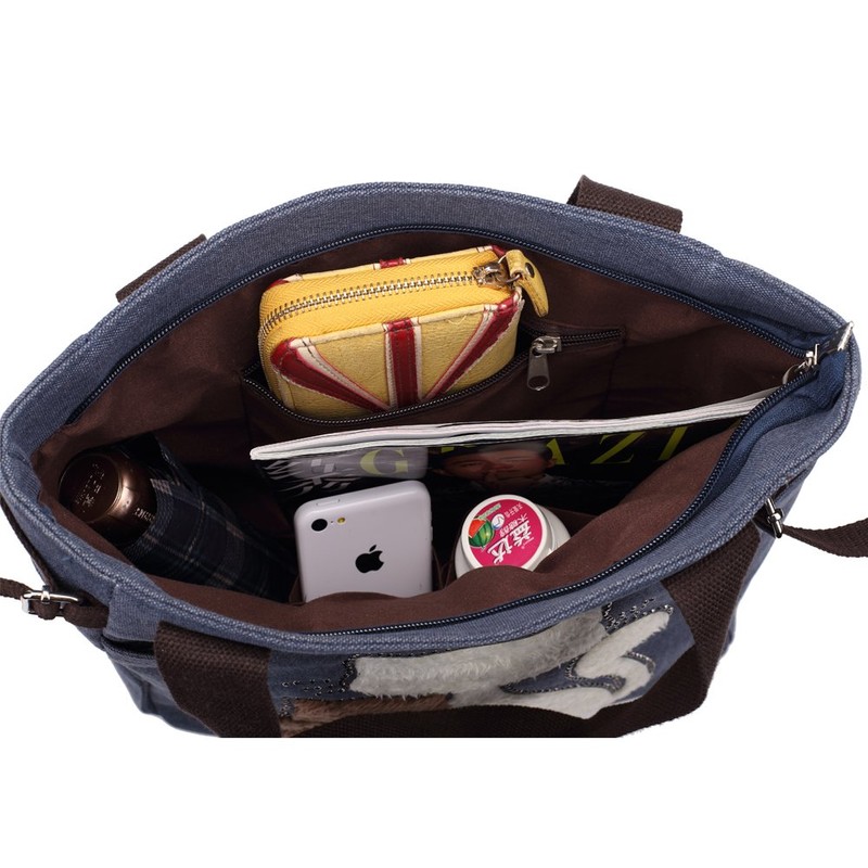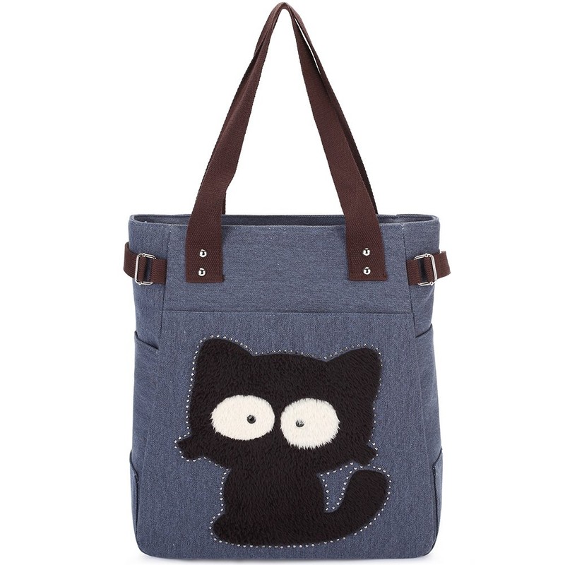 KAUKKO Women Canvas Handbag Shoulder Bag Cat Big Tote Bag