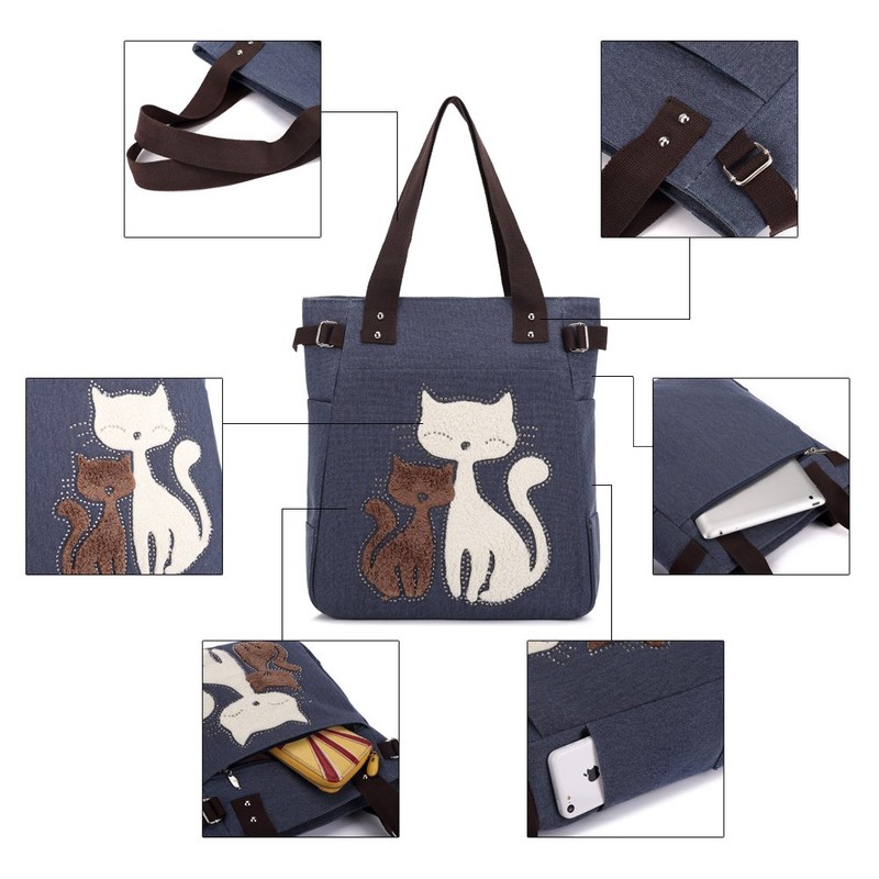 - High-quality Canvas material is soft,breathable,and durable. The cute cat pattern design is so modern and classic.Big capacity and lightweight is portable and handy.Can be used as a tote handbag or shoulder bag. This bag is fashionable as well as practical for various occasions.