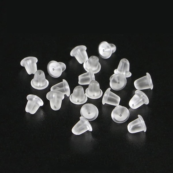 KAUNTY Silicone Clear Earring Backs, 200 PCS Bullet Clutch Safety Earring Backings Soft Back Pads Stopper Replacement for Fish Hook Earrings Studs Hoops (Large Size Diameter 5mm) (05402)