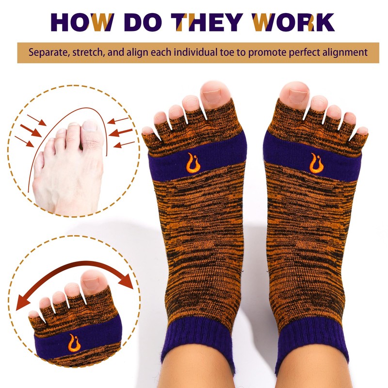 - 【Benefits of Toe Alignment Socks】:Toe separator socks allow for increased toe movement and toe separation. For you and your feet, this means: Less Friction ( Say goodbye to those painful blisters and corns between your toes. Those often occur due to painful friction between your toes and the pressure of walking ) .