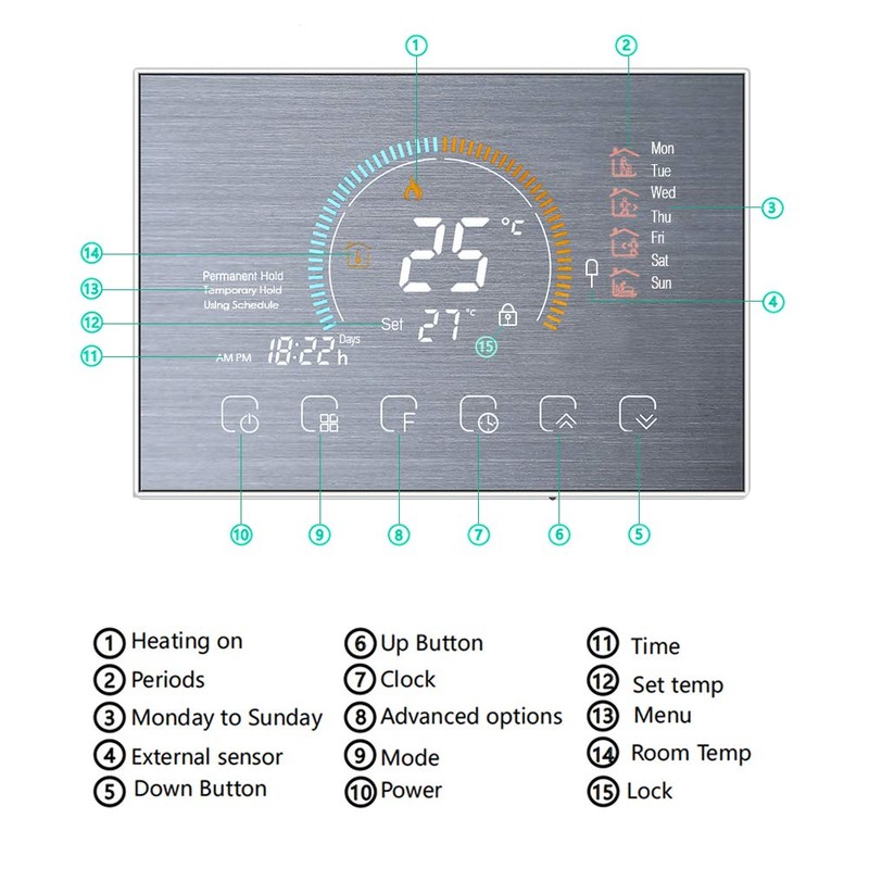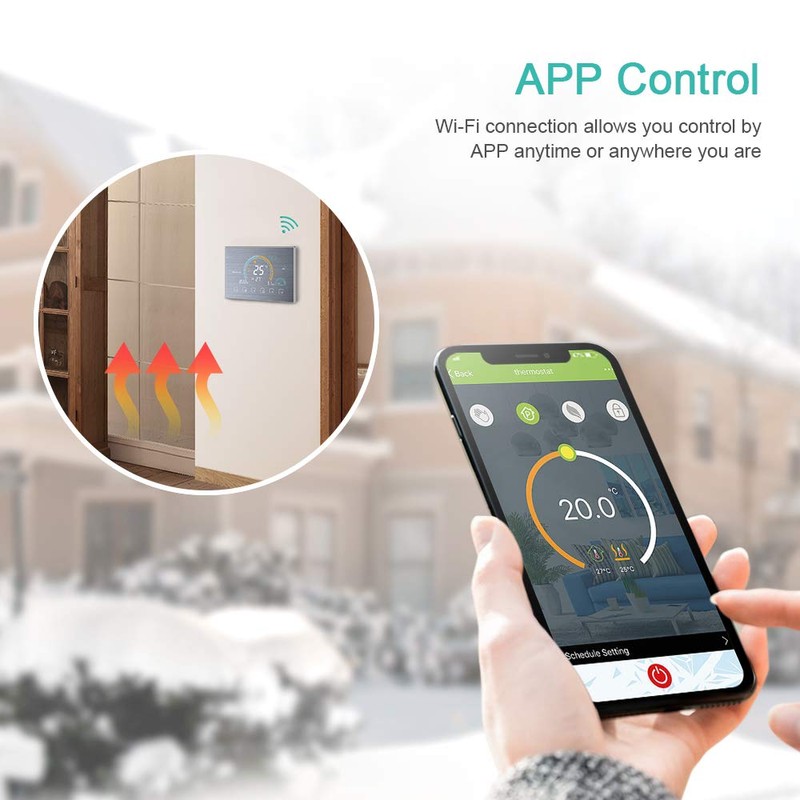 - Kavolet Wi-Fi Smart Programmierbarer Wasser-/Gas-Kesselthermostat mit UV-Index/Feuchtigkeitsanzeige/Sperrfunktion, Sprach-App-Steuerung, kompatibel mit Echo Google Home