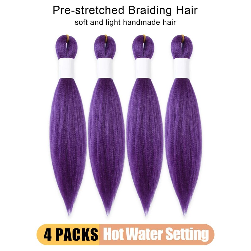 KAVSORAPI Purple Braiding Hair 10 Inch Pre Stretched Hair Long Straight Crochet Braids Yaki Texture Synthetic Fiber 4 Packs (Dark Purple)