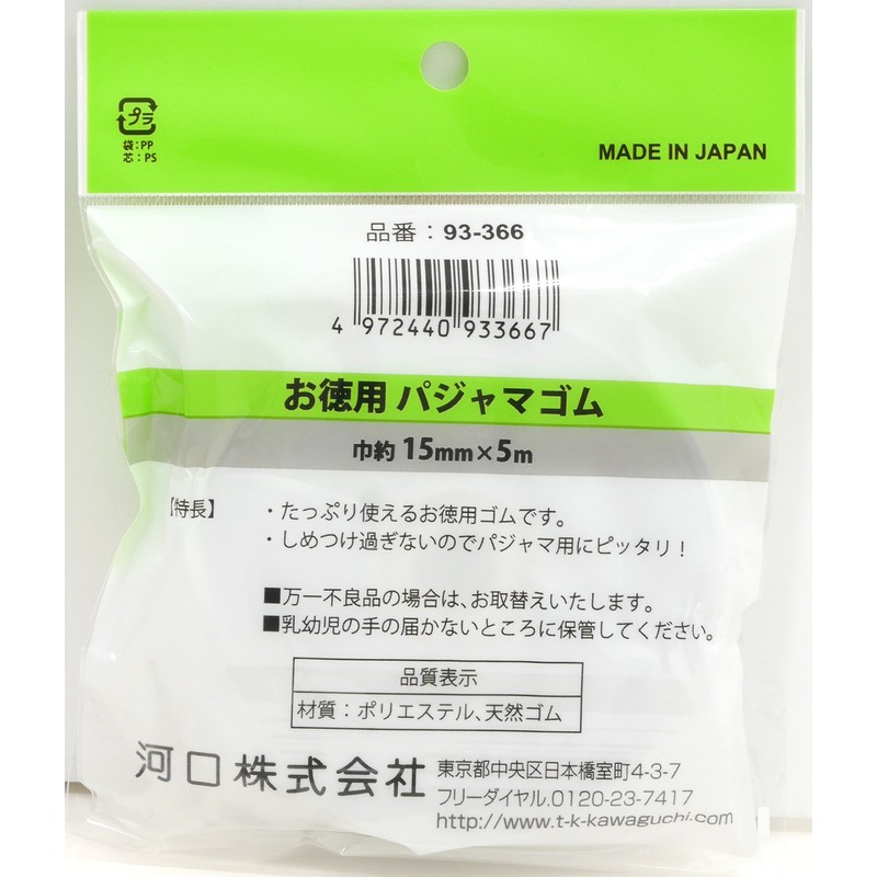 KAWAGUCHI 93-366 Value Pajamas Rubber Pajamas Width 0.6 inches (15 mm) Length 16.4 ft (5 m) Roll White