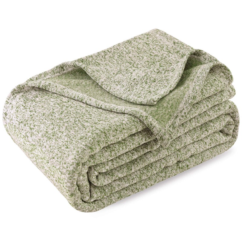 KAWAHOME Knit Blanket Lightweight Breathable Fuzzy Heather Jersey Thin Blanket for Couch Sofa Bed King Size 108 X 90 Inches Green and White